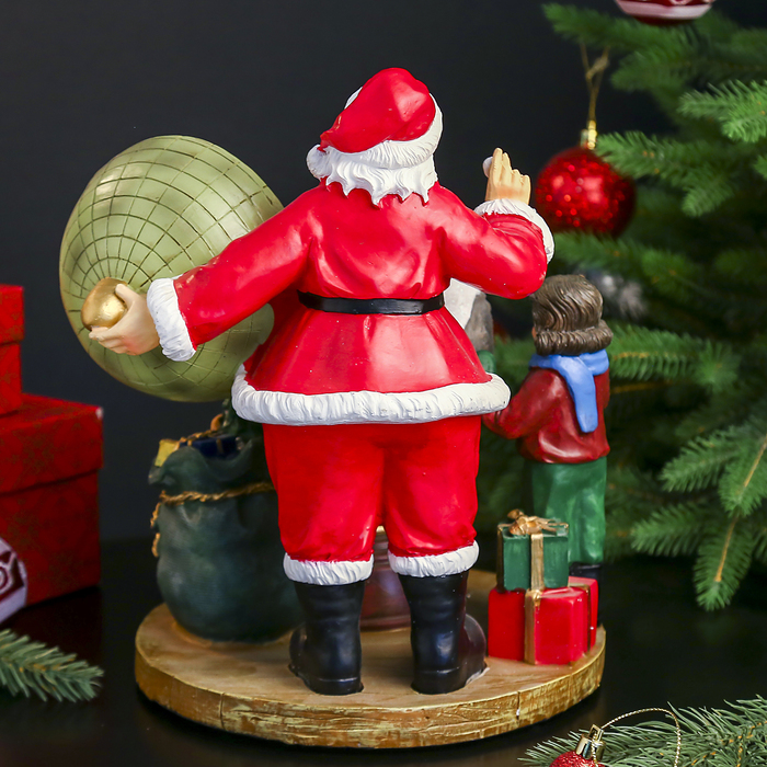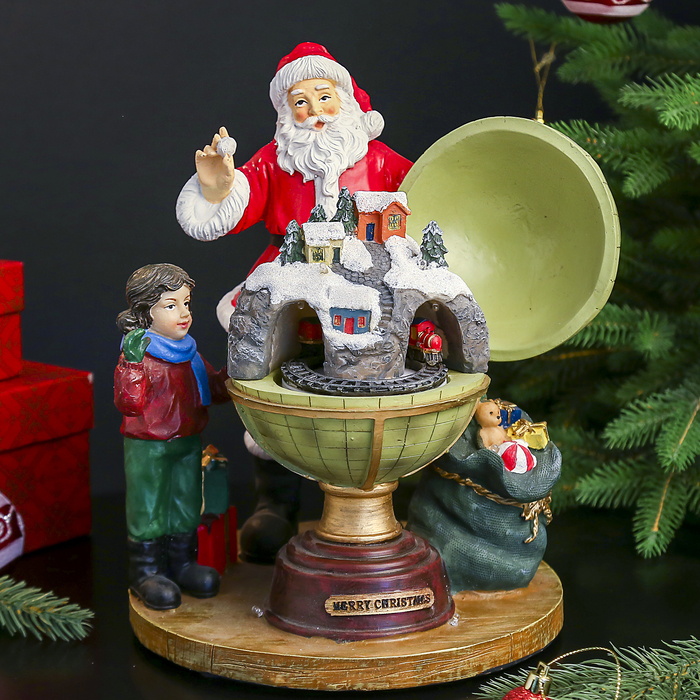Сувенир "Дед мороз у глобуса с городком" музык., световой, движущийся