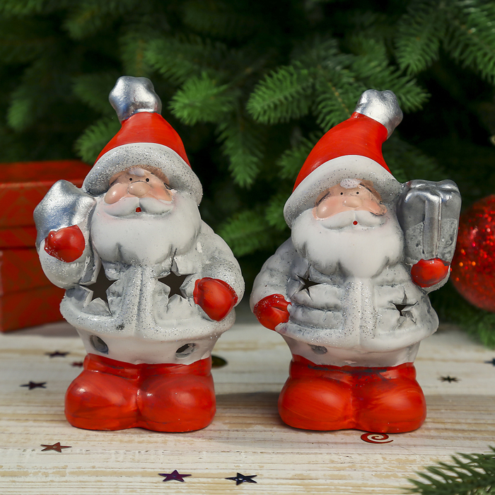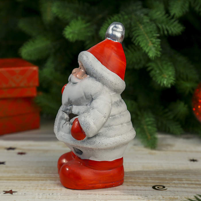Сувенир "Дедушка с подарком в белой курточке" световой, МИКС
