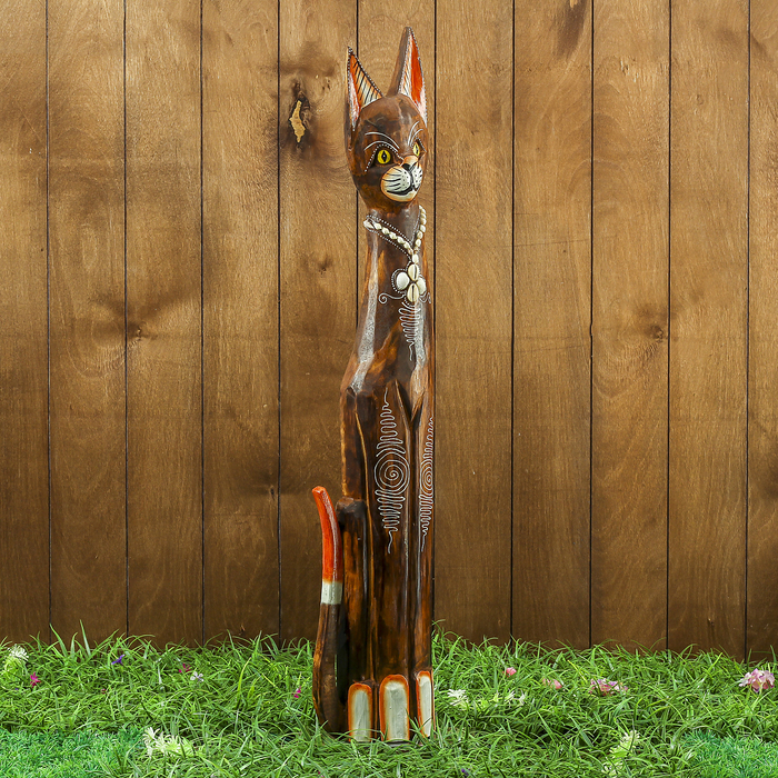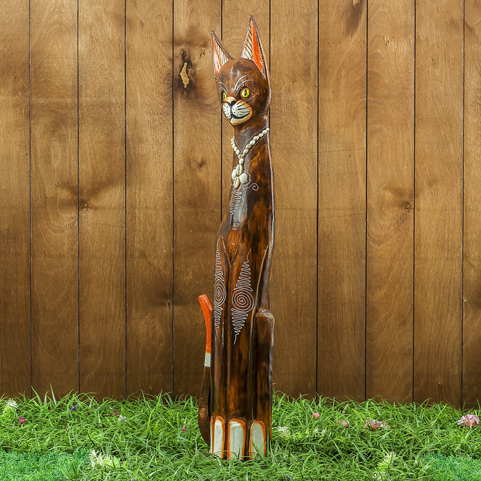 Сувенир дерево "Тёмная кошка с украшениями" 15х8х80 см
