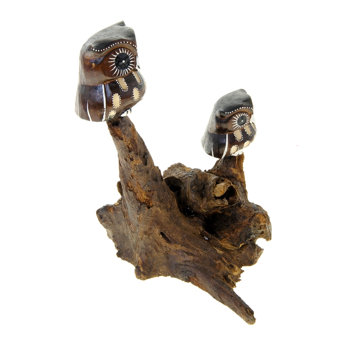 Сова всегда считалась символом мудрости и знаний, и очень часто в интерьере комнаты статуэтка занимает почетное место. Представляем Вам великолепный сувенир "Две совы на отдыхе" МИКС индонезийских мастеров ручной работы, каждое подобное изделие уникально и неповторимо. В культуре фен-шуй, например, можно часто встретить сов или филинов, изображенных на денежном дереве, как талисман притягивающий достаток в семью. Вероятно, это и есть то самое денежное дерево, которое принесет в дом целое состояние.