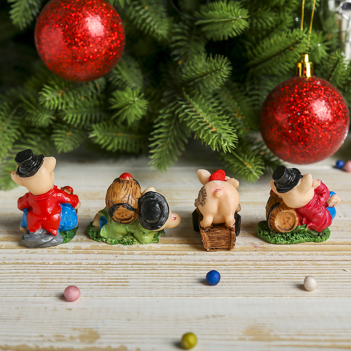 Сувенир фарфор "Свиньи с бочонками" 5,5х4,5 см (набор 4 шт)