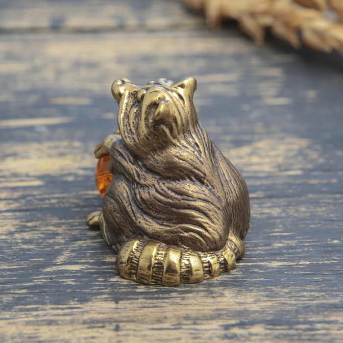 Сувенир из латуни и янтаря "Енот-полоскун" 3,2х2,8 см