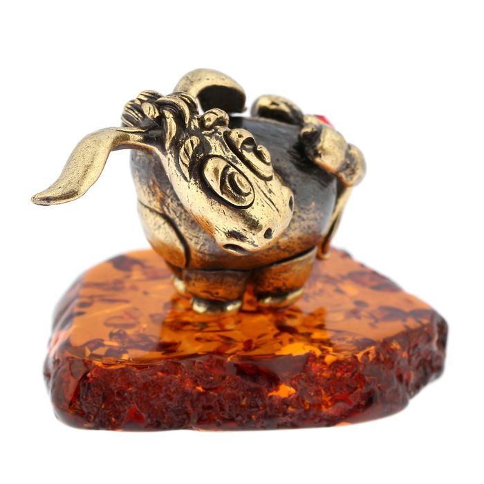 Сувенир из латуни и янтаря сможет стать самостоятельным подарком или необычным дополнением к нему и точно не останется без внимания.