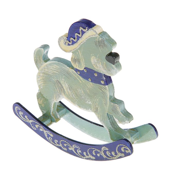 Сувенир-качалка Собачка бело-синяя, ручная работа