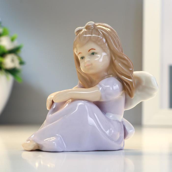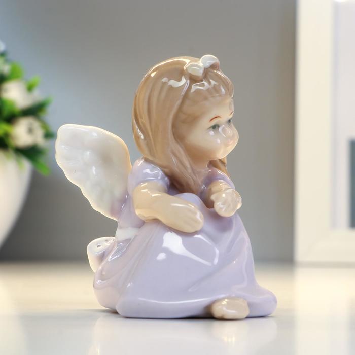 Сувенир керамика "Ангел-девочка в сиреневом платье" 7х6,5х6,5 см