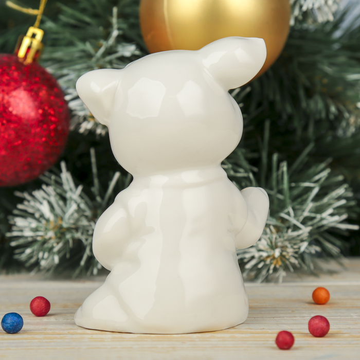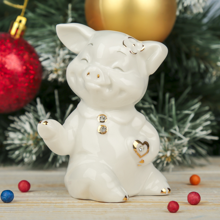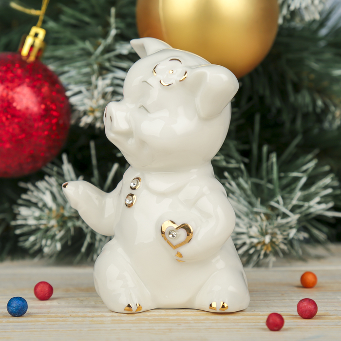 Сувенир керамика "Белая свинка с цветочком" 10,3х7,5х6 см
