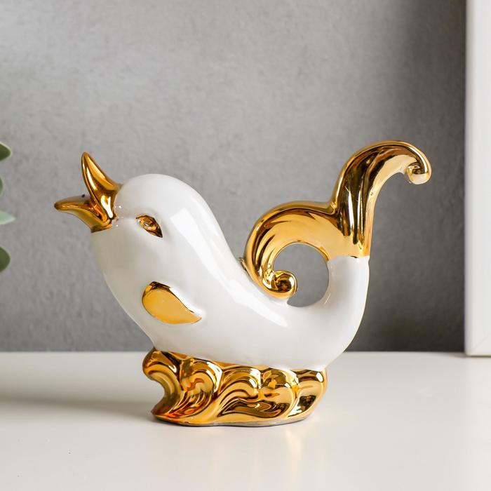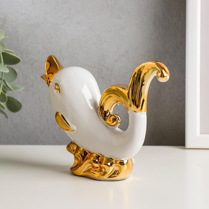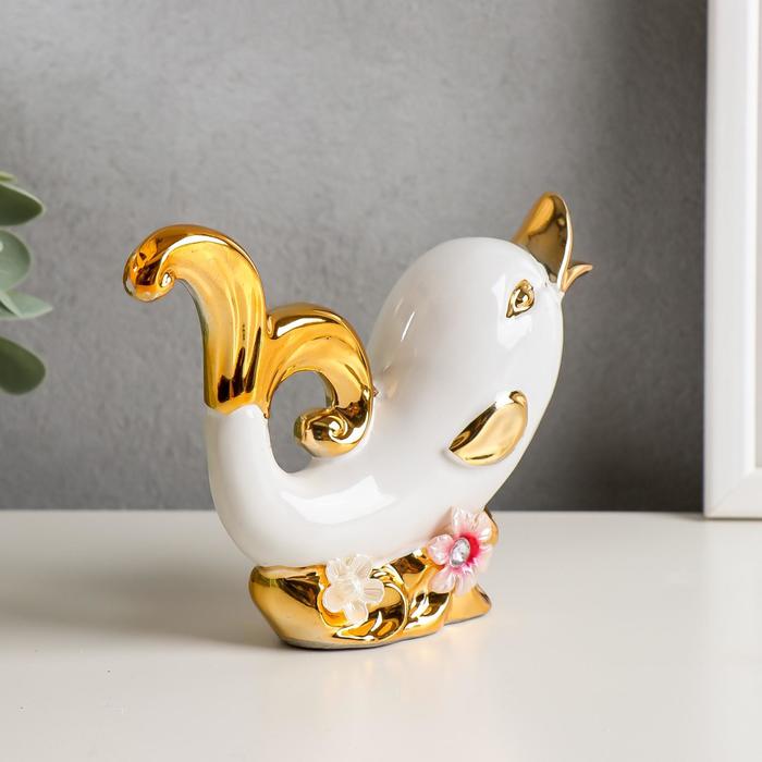 Сувенир керамика "Белый дельфин с цветами" 11х15,7х5 см