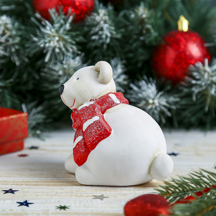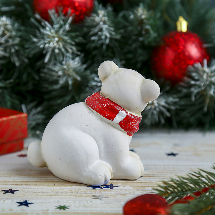 Сувенир керамика "Белый мишка в красном шарфике" 9х9х7 см