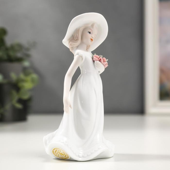 Сувенир керамика "Девочка с цветами и в шляпке" 15,2х8,5х7 см