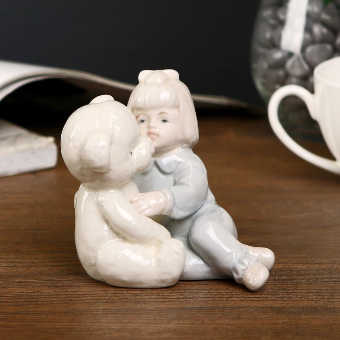 Сувенир керамика "Девочка в голубой пижамке с медведем" 8,5х9х6,5 см