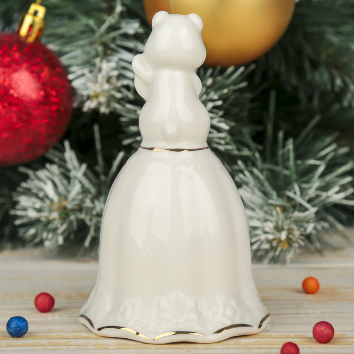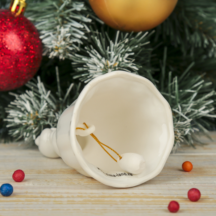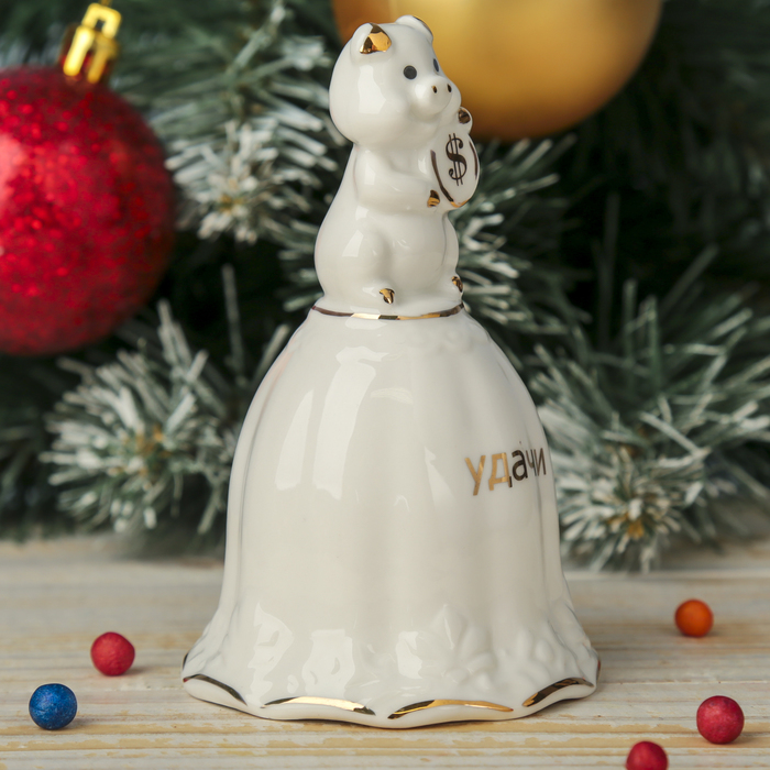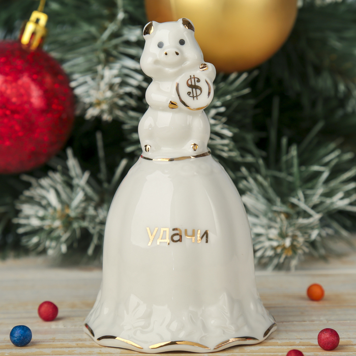 Сувенир керамика колокольчик "Белый поросёнок с монеткой - Удачи" 12х6,8х6,8 см