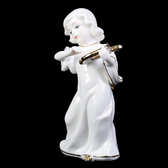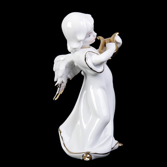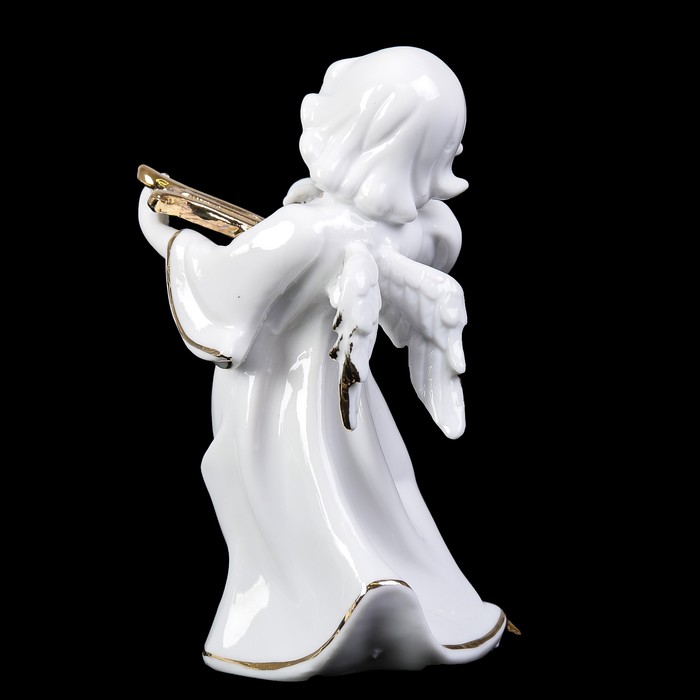 Сувенир керамика под фарфор "Ангел с арфой" белый с золотом 15,5х7,5х9 см