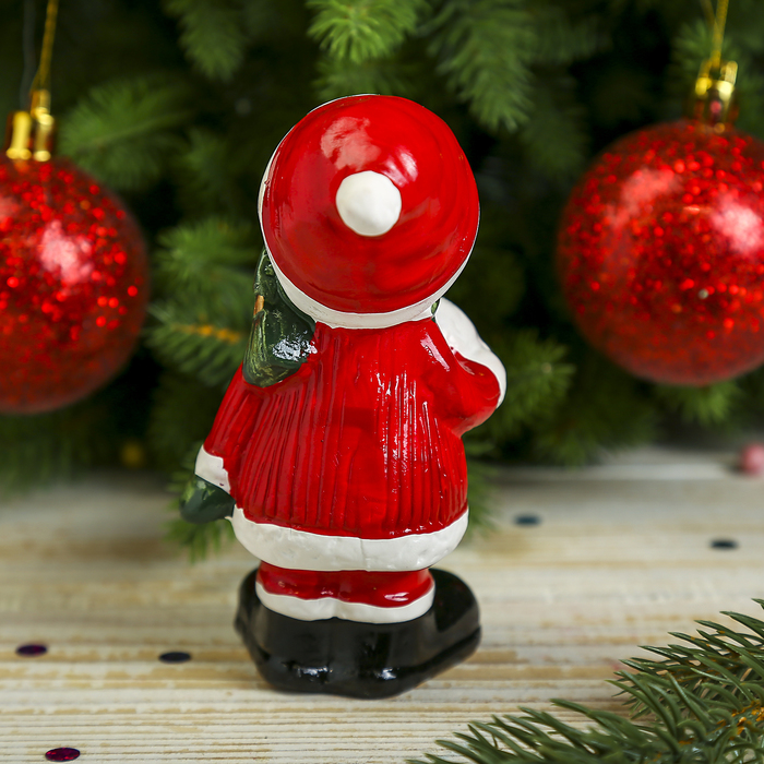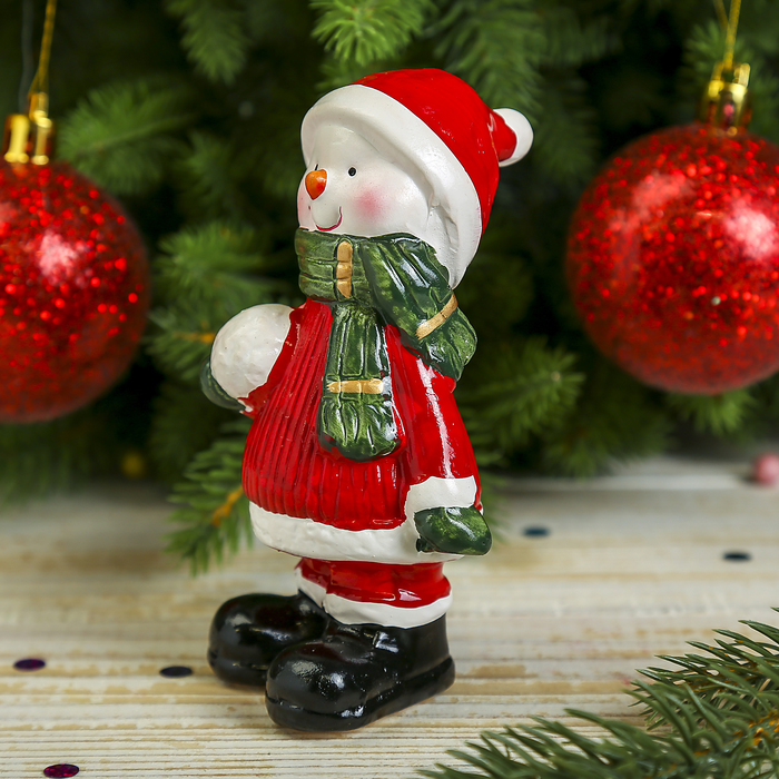 Сувенир керамика "Снеговичок в красном свитере и зелёном шарфике со снежком" 12х6,5х4,5 см