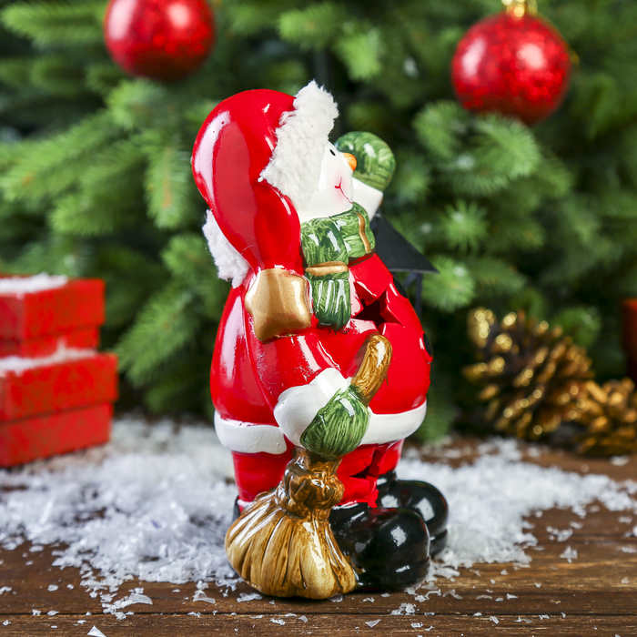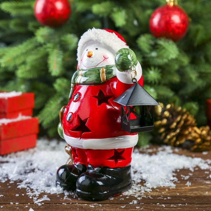 Сувенир керамика световой "Снеговик с фонариком" 16,5х12х7,5 см