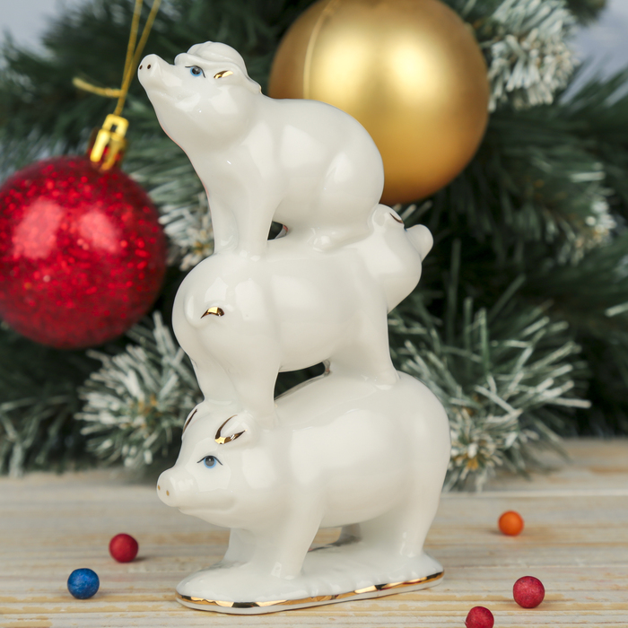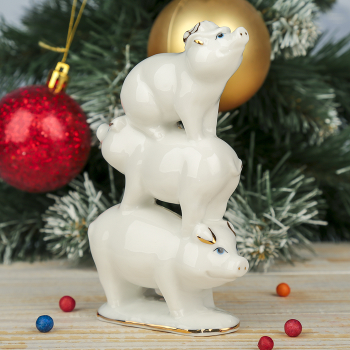Сувенир керамика "Три белых поросёнка" 13,5х7,5х4 см