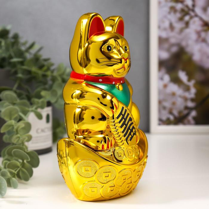 Сувенир "Кот Манэки-нэко на слитке", цвет золото