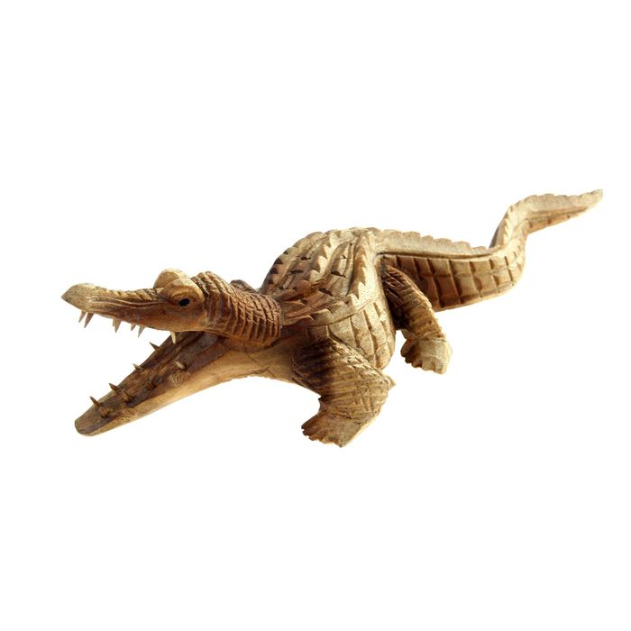 Не бойтесь этого индонезийского крокодила, он выполнен из дерева, хотя и выглядит как настоящий. Посмотрите на его мощную пасть, чуть изогнутый хвост, будто этот хищный красавец вот-вот ринется в бой, защищая себя, свое жилище, детей… Сувенир "Крокодил", большойсчитается стражем дверей и защитником дома. Стоит отметить, что крокодил с открытой пастью олицетворяет движение против течения и освобождение от ограничений мира. Сильный оберег и экзотическое украшение интерьера, которое расставит необходимые акценты и привнесет азиатский шик.