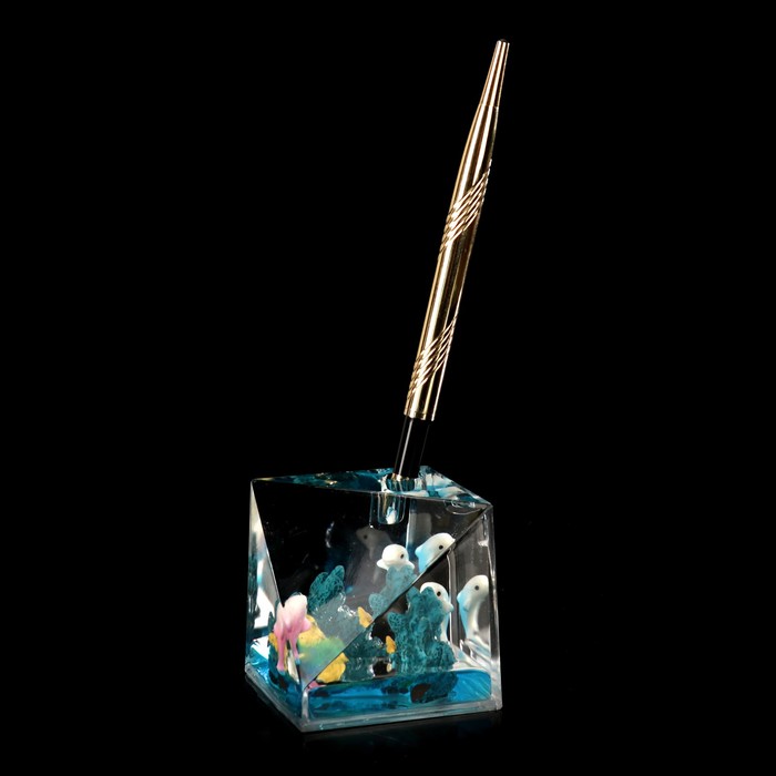 Сувенир настольный подставка для ручки "Дельфин и рифы" 6,4х6,4х6,4 см