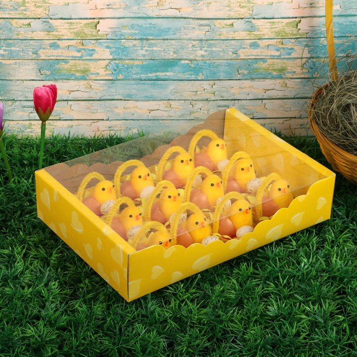 Сувенир пасхальный "Цыплёнок с яичками в корзине" (набор 12 шт) 5,5х25,5х17 см