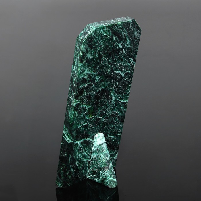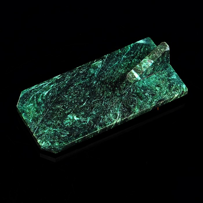 Змеевик или серпентин похож на змеиную кожу, а его цвет варьируется от тёмно-зелёного до жёлто-зелёного. В рисунке камня есть полосы, вкрапления и пятна. Материал податлив, мягок и удобен для обработки, поэтому он очень популярен в изготовлении шкатулок, статуэток, украшений, ваз, посуды и других изделий.