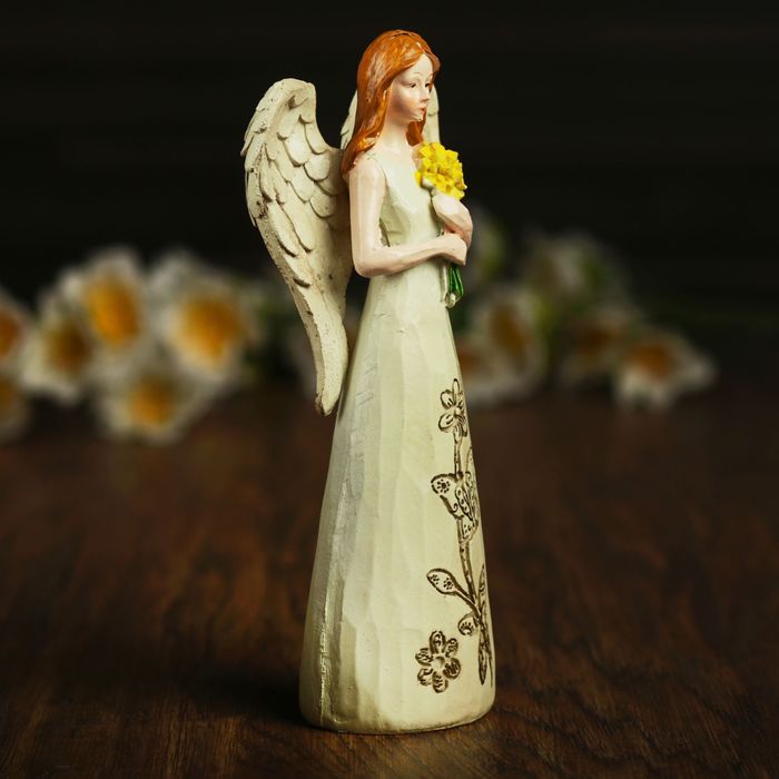 Сувенир полистоун "Ангел-девушка в платье с цветком и бабочкой" МИКС 17х7х4 см