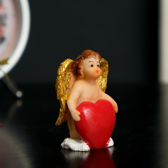 Сувенир полистоун "Ангел с золотыми крыльями и красным сердцем" в пакетике МИКС 5,5х4х2,5см