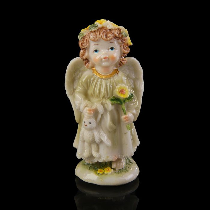 Сувенир полистоун "Ангелочек-малышка с зайцем/розой" лак МИКС 11х6х5,5 см