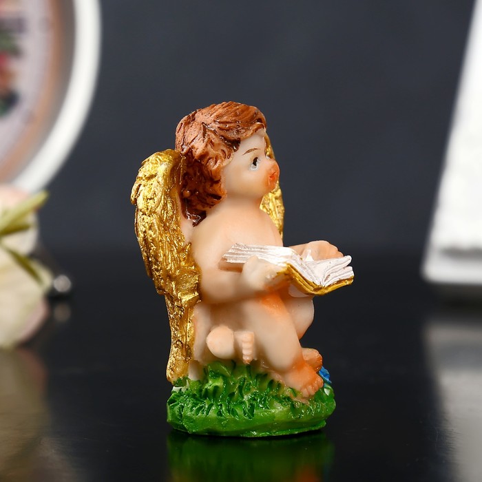 Сувенир полистоун "Ангелочек с золотыми крыльями читающий" в пакетике МИКС 5х4х2,8 см