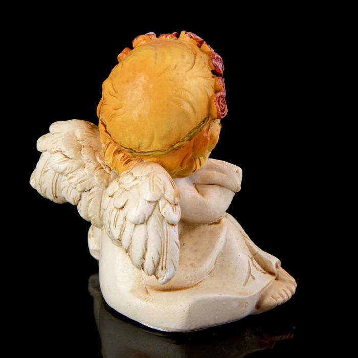 Сувенир полистоун "Ангелочек в платье с веночком из роз сидит" МИКС 7,5х5,5х6 см