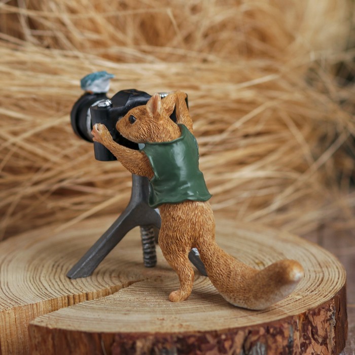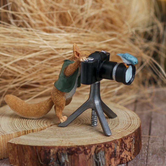Сувенир полистоун "Бельчонок-фотограф и синичка"