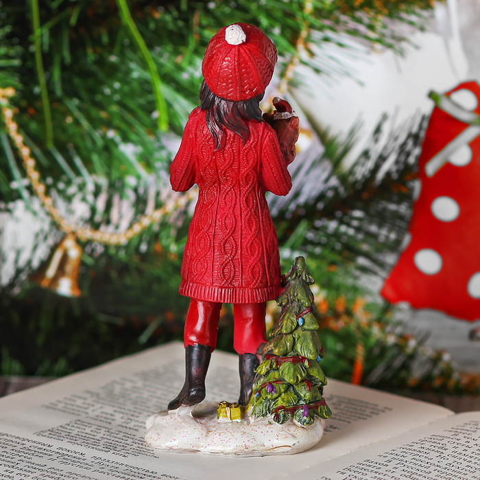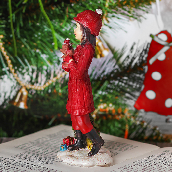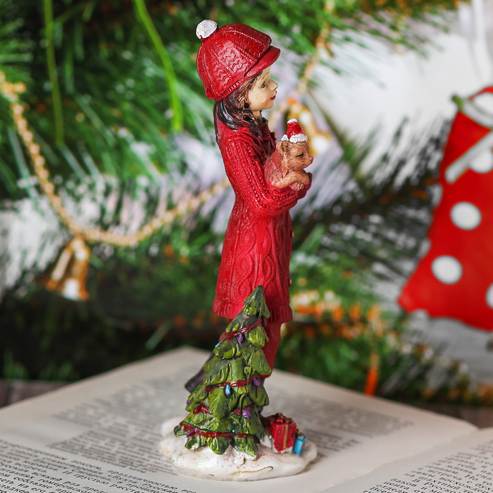 Сувенир полистоун "Девочка в вязаном пальто с котёнком на руках" 14,5х6,5х5 см