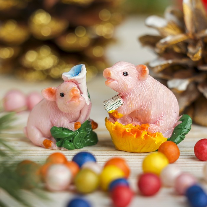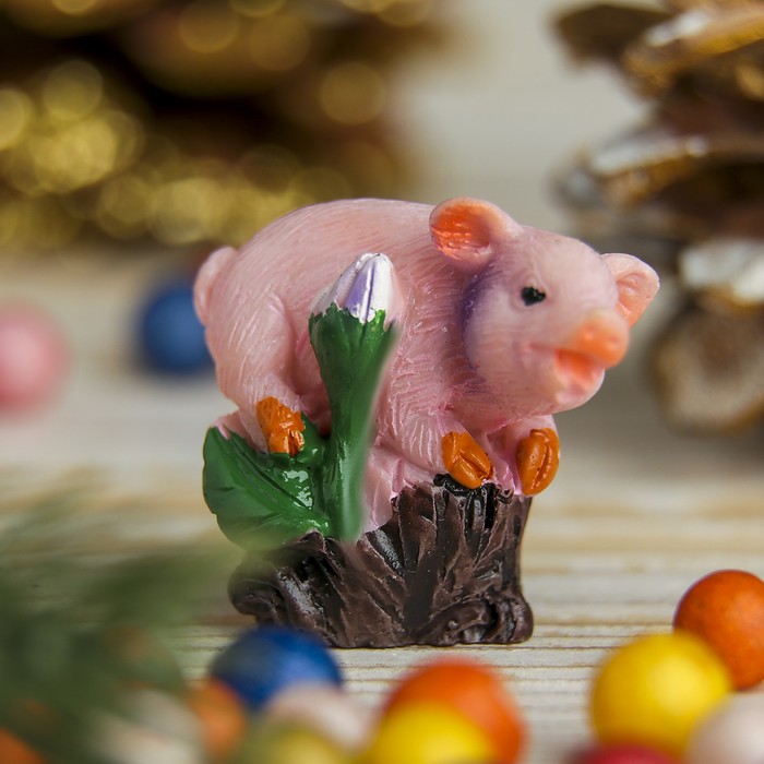 Сувенир полистоун "Хрюшка на цветочной полянке" МИКС 3х2,8х1,8 см