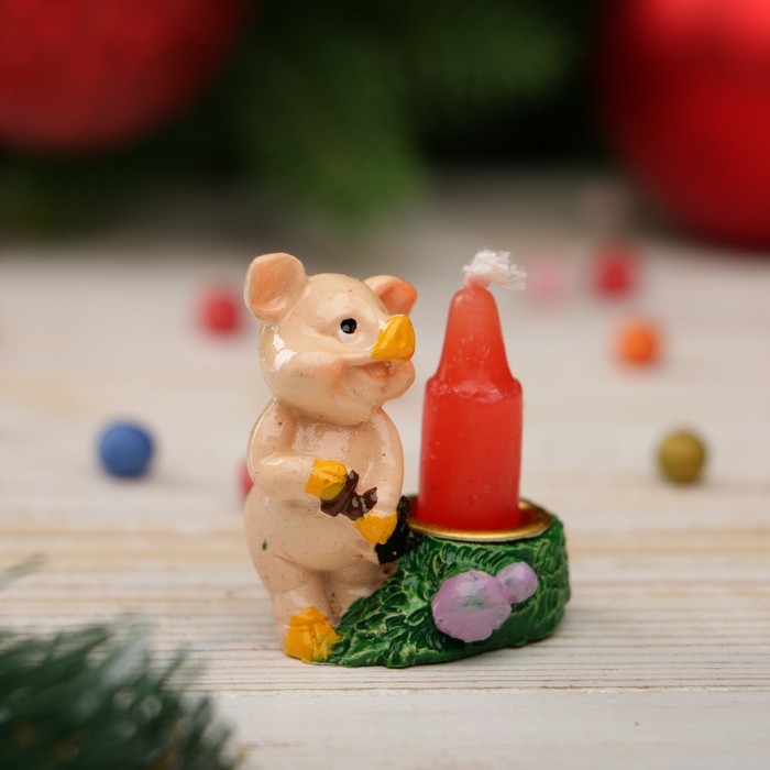 Сувенир полистоун "Хрюшка со свечкой в саду" 4,5х2,5х4 см