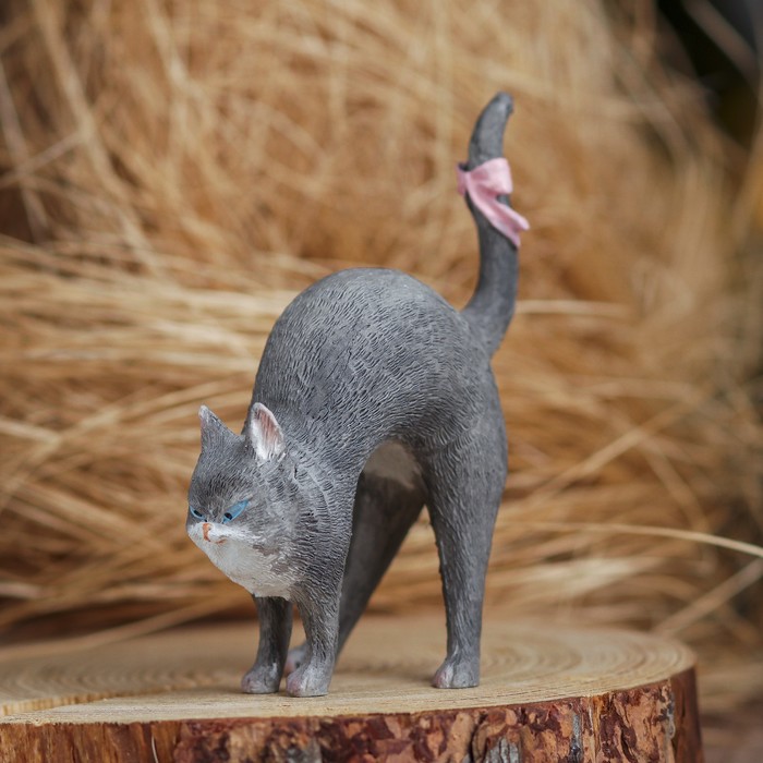 Сувенир полистоун "Кошка-пухлик с бантиком - Спинка дыбом"