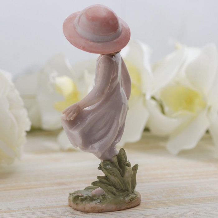 Сувенир полистоун лак "Девочка в шляпке прогулка по лугу" 17,5х8х5 см