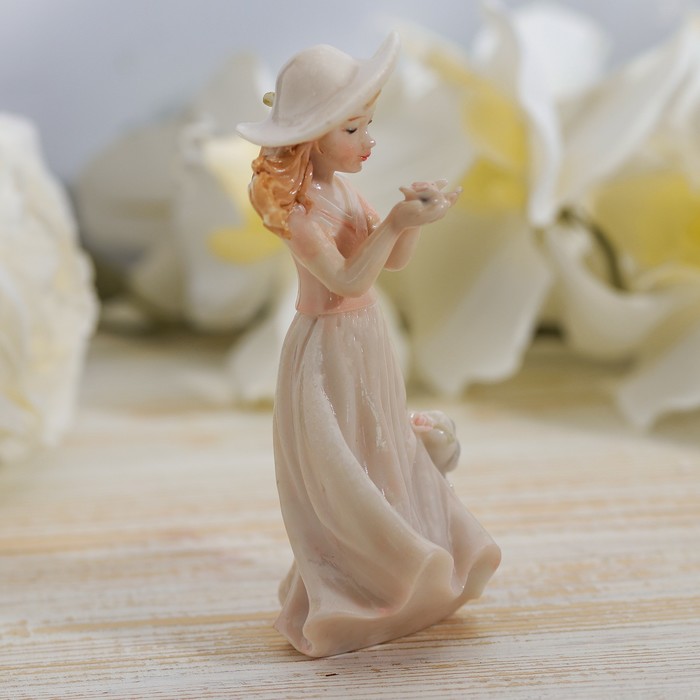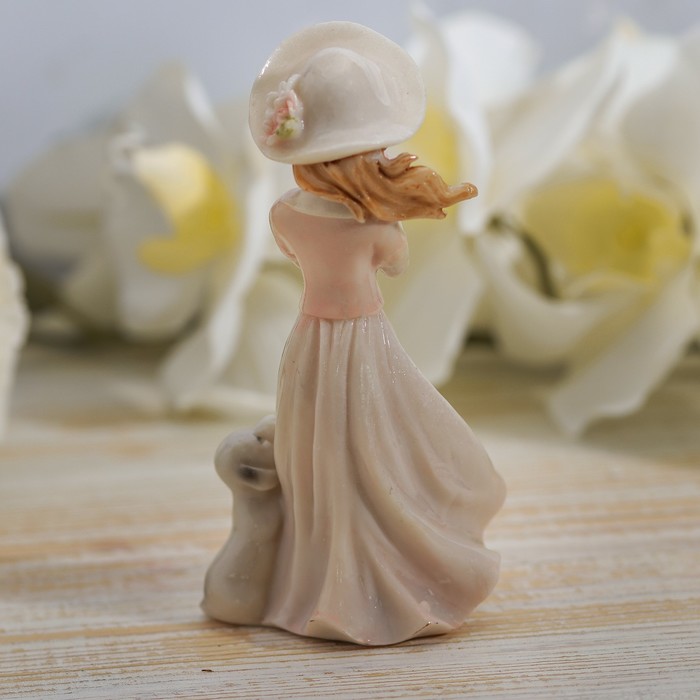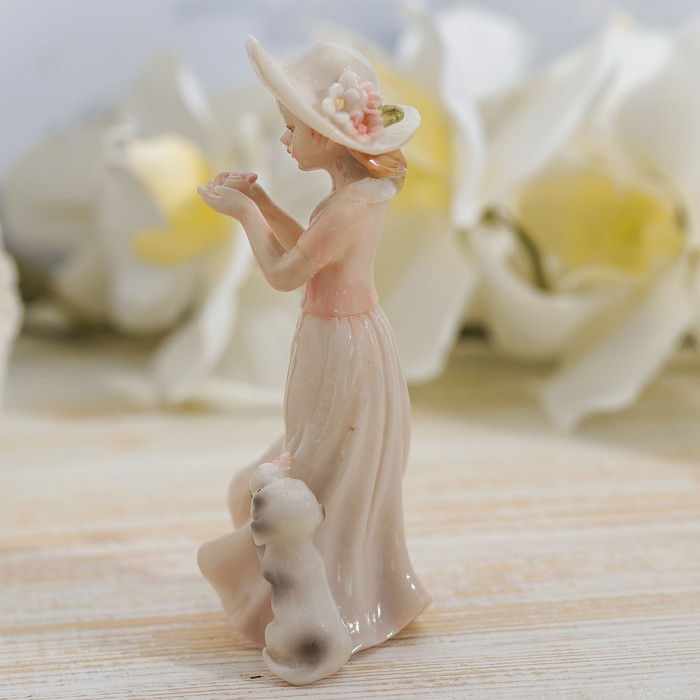 Сувенир полистоун лак "Девочка в шляпке с цветком и щеночком" 14,5х6х7 см