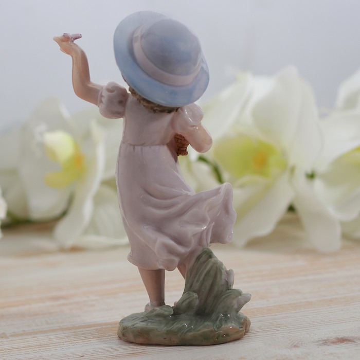 Сувенир полистоун лак "Девочка в шляпке с корзиной цветов" 17х9,5х5 см