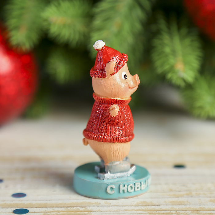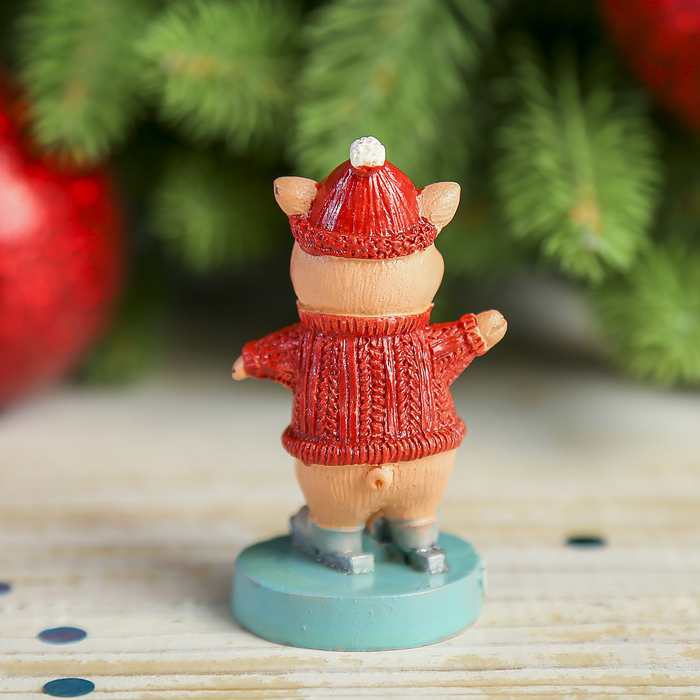 Сувенир полистоун "Поросёнок Тоша в свитере на коньках" h=5,5 см