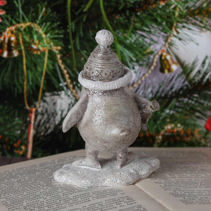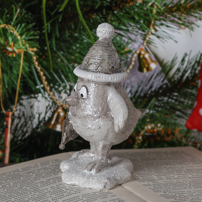 Сувенир полистоун "Птенчик в вязаной шапке с ёлочкой" 12х9,5х6,5 см