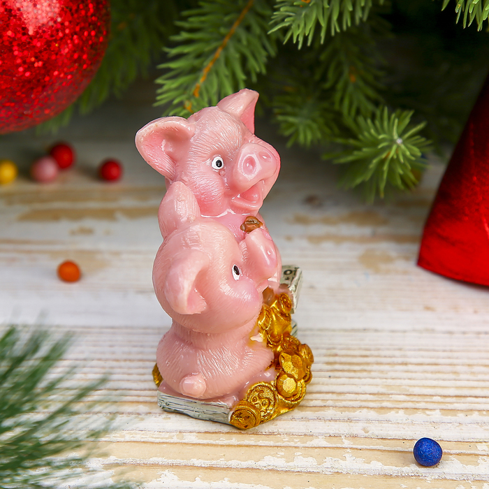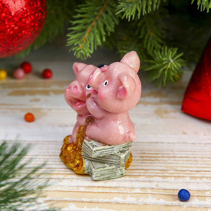 Сувенир полистоун "Розовые поросята с золотом" МИКС 7х6,4х3,5 см