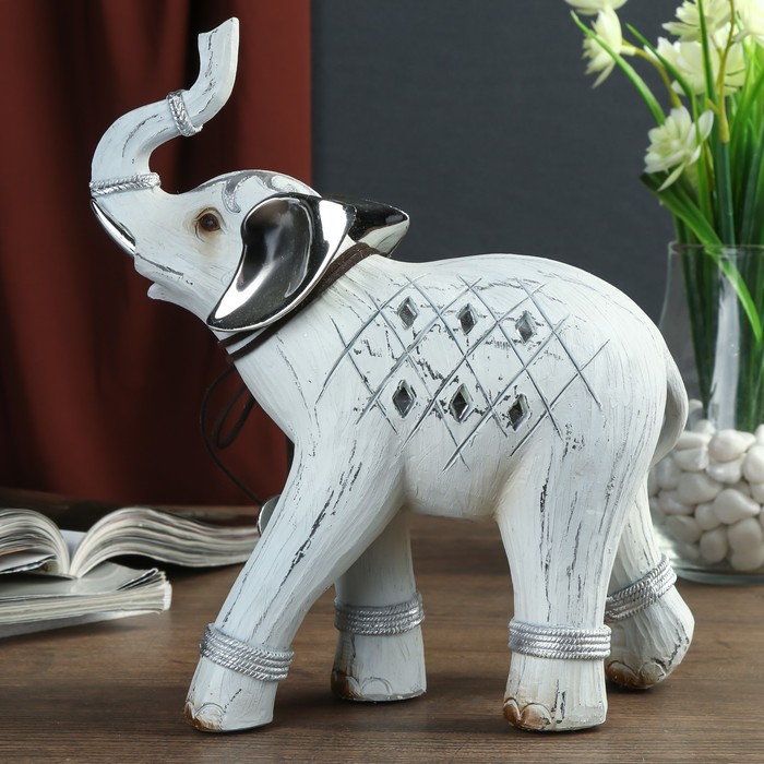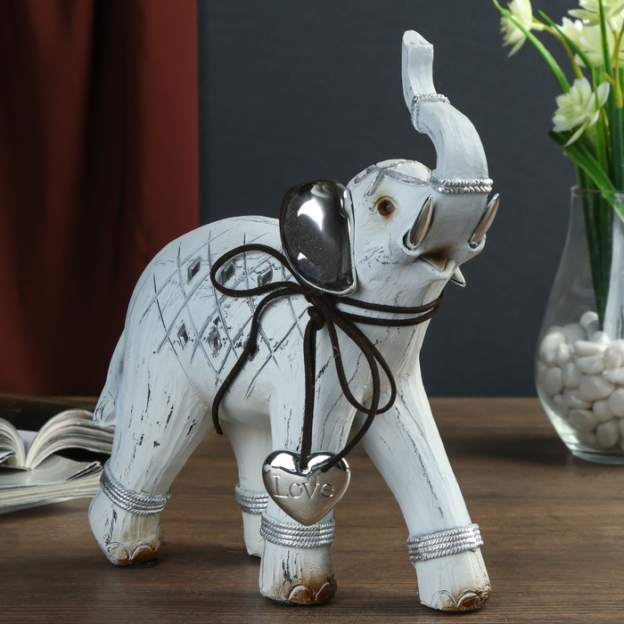 Сувенир полистоун "Слон с серебристыми ушами с сердцем на шее - хобот вверх" 20,2х19,2х7см