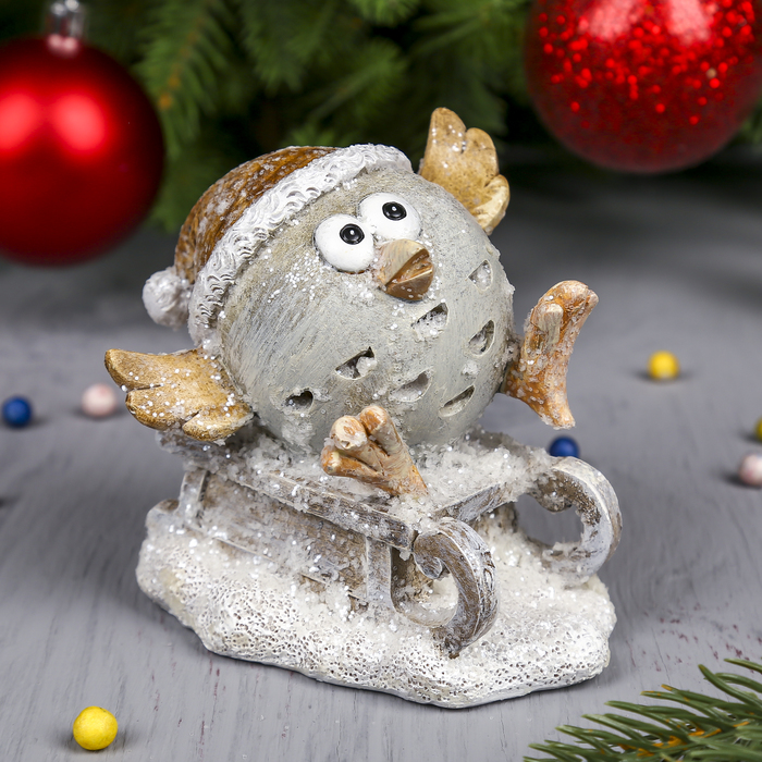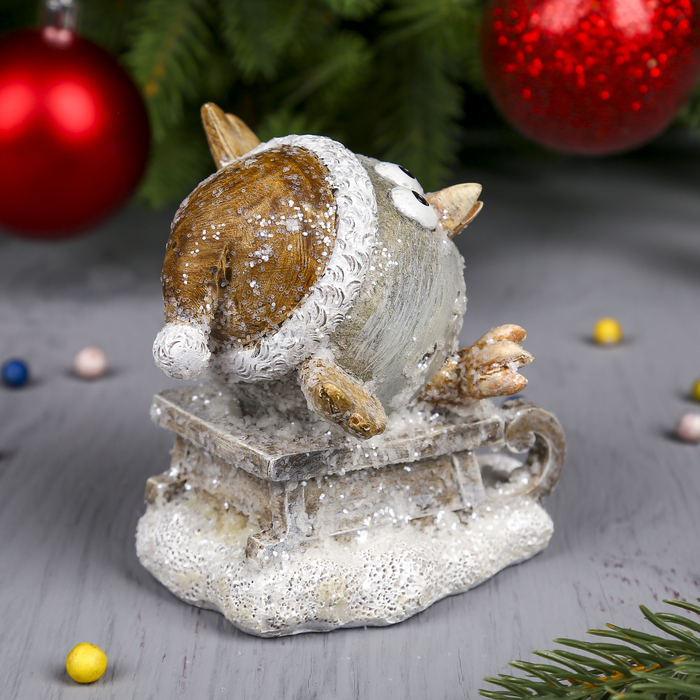 Сувенир полистоун световой "Птенчик в шапке-ушанке на санках катится с горы" 9,5х10,5х8 см