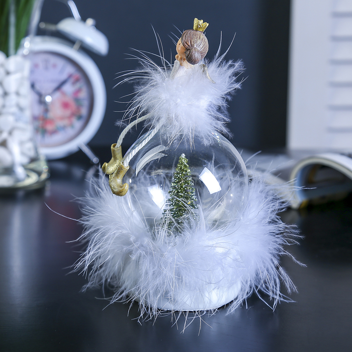 Сувенир полистоун световой шар "Ангелочек-принцесса пушок с ёлочкой" 19х8,5х8,5 см