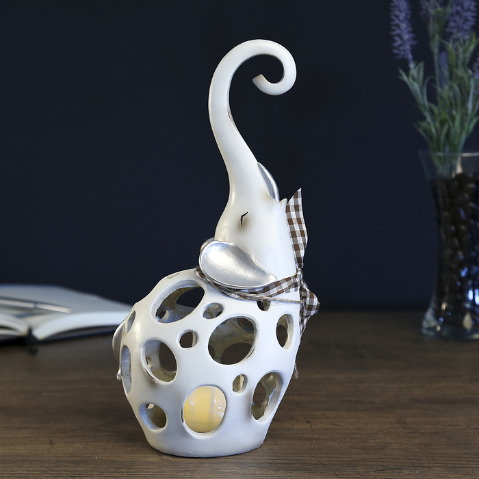 Сувенир полистоун световой "Слон ажурный с бантом" 27х12,5х10 см