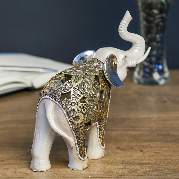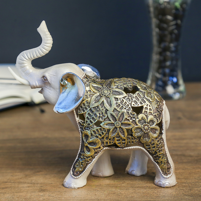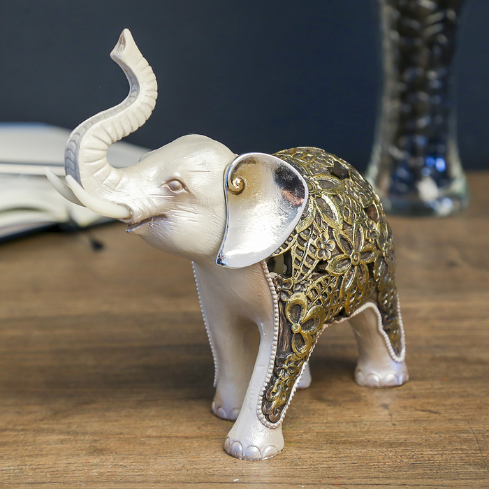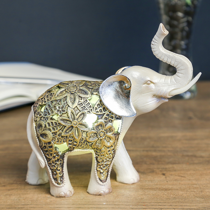 Сувенир полистоун световой "Жемчужный слон в цветочной золотой попоне" 17,5х18,5х7 см