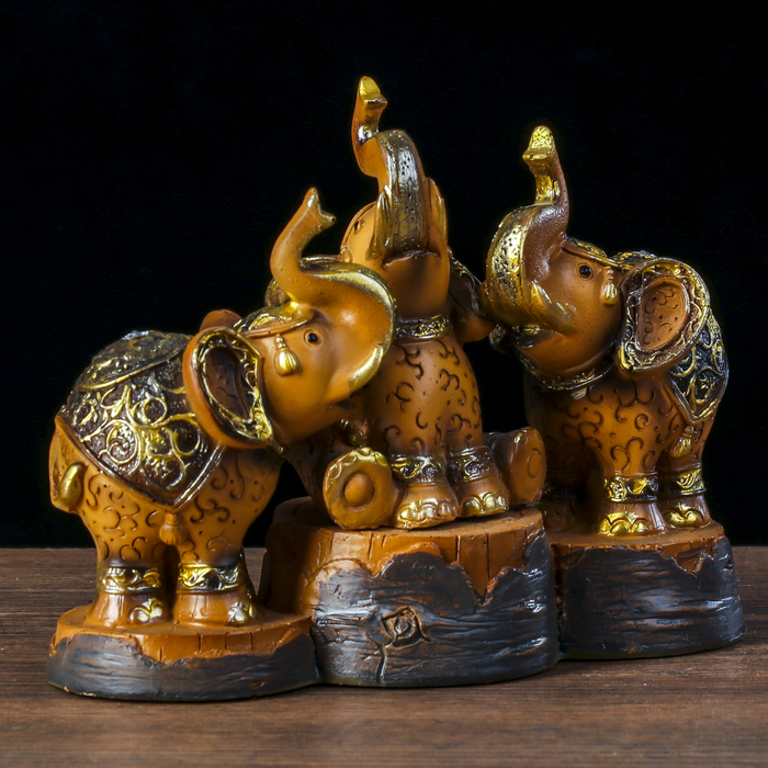 Сувенир полистоун "Три слонёнка с узорами на попоне" 13х18,5х7 см