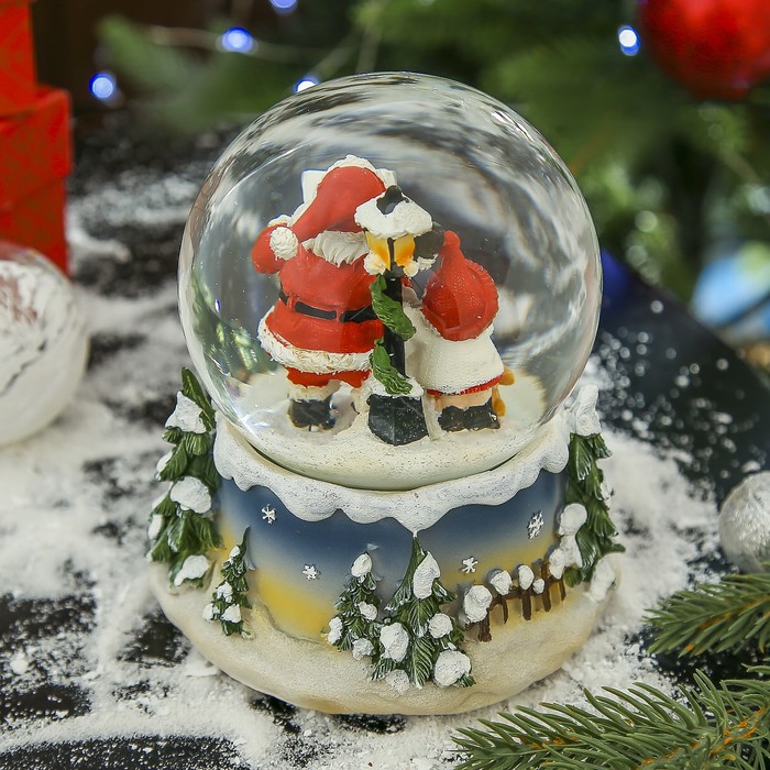 Сувенир полистоун водяной шар музыкальный "Дедушка Мороз читает книжку" 14,5х12,5х12 см