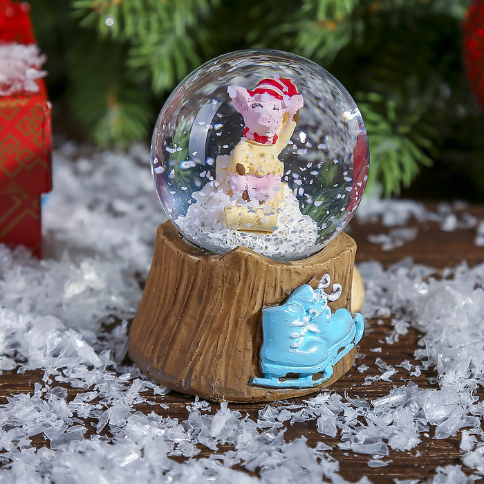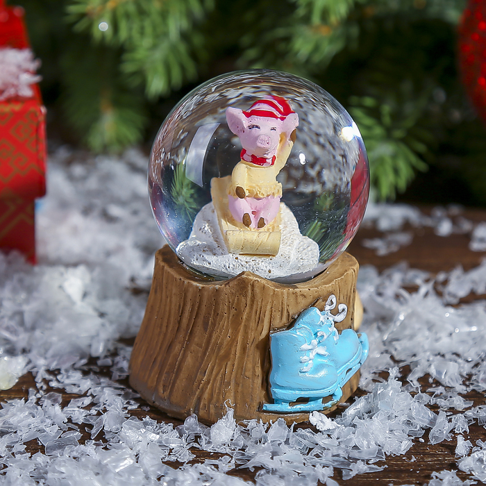 Сувенир полистоун водяной шар "Поросёнок летит с горы" d=4,5 см