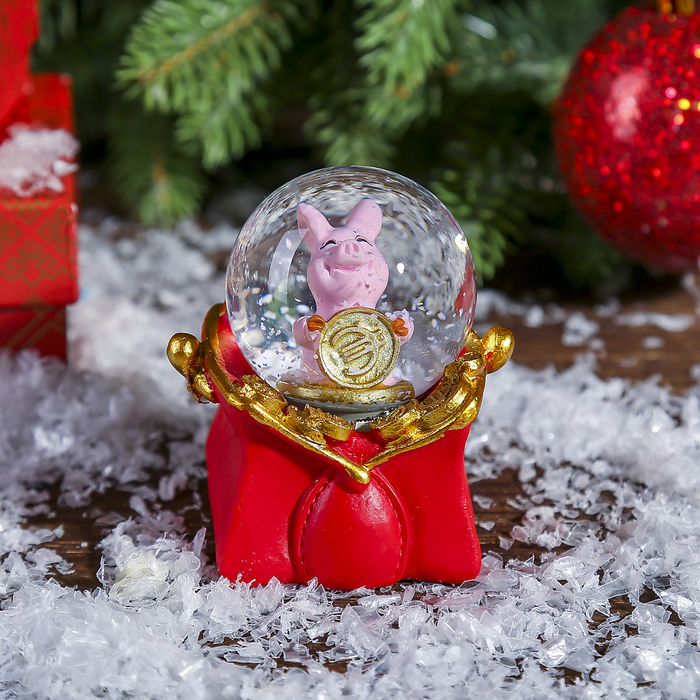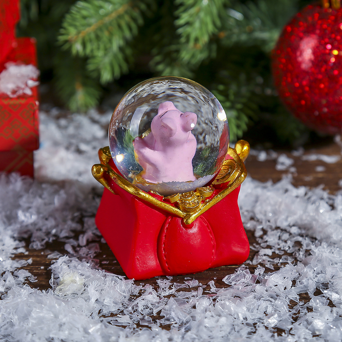 Сувенир полистоун водяной шар "Поросёнок в кошелёчке" d=4,5 см