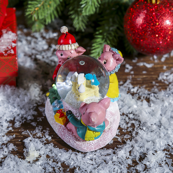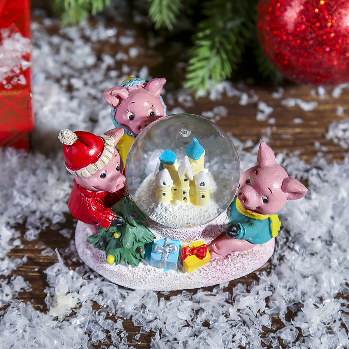 Сувенир полистоун водяной шар "Три поросёнка" d=4,5 см